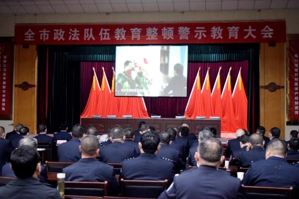 结合政法系统教育整顿工作,市纪委监委派出第八纪检监察组深入到政法系统各单位开展警示教育专场活动,累计在市委政法委、检察院、法院等单位召开警示教育大会5场次,600余名政法干警受到了教育警醒。