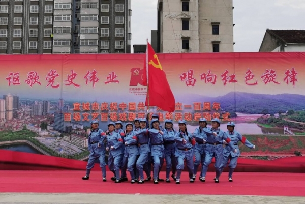 本网讯记者邬玲玲 通讯员余洋报道:4月6日下午,宜城市“讴歌党史伟业 唱响红色旋律”文化下乡进社区活动首场演出在紫盖山广场举行,拉开宜城市庆祝中国共产党建党100周年系列文化活动序幕。