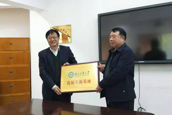 本网讯通讯员郑自运报道:4月14日,湖北工业大学党委副书记蔡光兴一行到宜城一中调研,对宜城一中多年来的办学成绩给予高度评价,对该校每年为湖工大输送一大批优秀学子表示感谢,并为宜城一中授予"优质生源基地”匾牌。