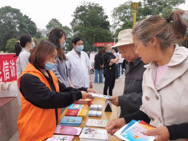 本网讯记者易振波 通讯员宗思诗报道:5月18日,宜城市司法局联合市信访局、市妇联在紫盖山广场开展“美好生活·民法典相伴”宣传活动。