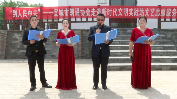 本网讯记者刘毅报道:5月21日,在“5.23”中国文艺志愿者服务日到来之际,宜城市文联组织朗诵协会、作家协会走进新时代文明实践站--流水镇莺河村,开展文艺志愿服务活动,以诗歌朗诵形式为广大群众送去一场精彩的文化盛宴。