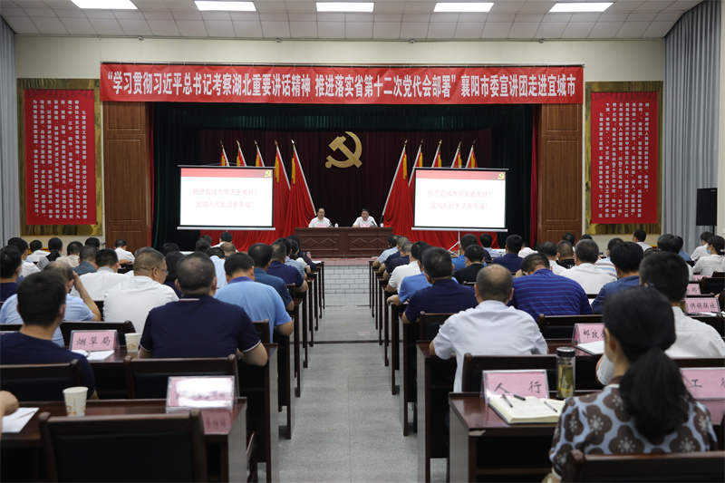 报道:8月12日,学习贯彻习近平总书记考察湖北重要讲话精神推进落实省第十二次党代会部署襄阳市委宣讲团宜城报告会在财培中心召开,旨在通过抓“关键少数”,带动绝大多数,促进全市各级领导干部深入学习宣传贯彻习近平总书记考察湖北重要讲话精神推进落实省第十二次党代会部署,迅速在全市掀起学习宣传热潮,切实把讲话精神转化为做好当前工作的具体行动,聚焦“千亿级、五十强、幸福城”目标,蹄疾步稳推动经济社会高质量发展。
