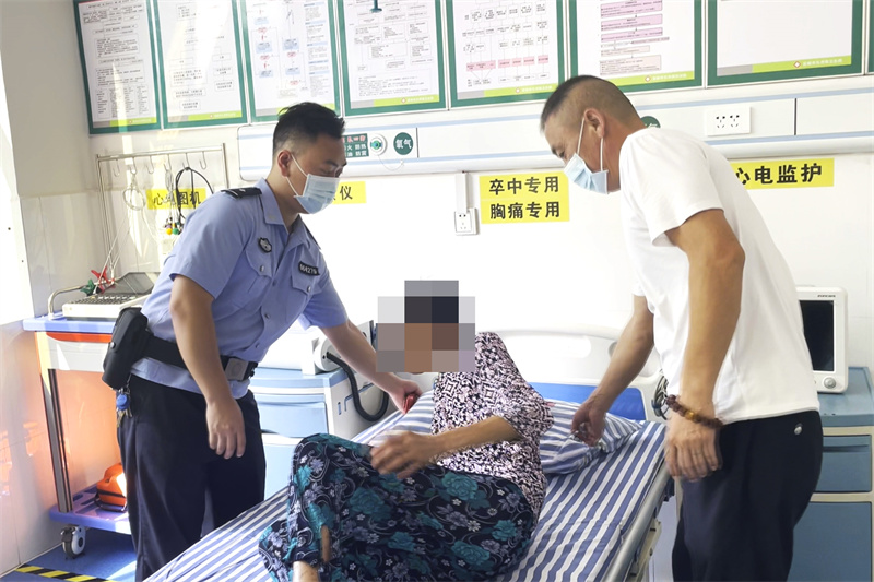 本网讯通讯员梁开至 孙双红报道:老太太独自去镇上赶集,因天气炎热身体不适,准备到附近面馆喝口水,然而没走两步便倒在路边,店主连忙报警求助。宜城市公安局孔湾派出所民警迅速赶到,及时送老人就医,联系家属前来看护。