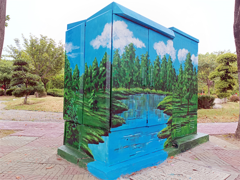在箱柜彩绘设计中,宜城不追求彩绘格式统一,强调绘画与周边环境相结合,如彩绘图案与树木草丛、楼宇建筑、人文环境相适应,绿化带箱柜绘画灌木丛,树木旁箱柜绘画同类树木,使箱体美化与环境相得益彰。同时考虑到如果单纯在箱体上粘贴宣传画不易持久保管且已破损,宜城采取手绘方式,利用"新材料",使用透明型光固化面漆,为彩绘箱柜打造"贴膜"保护层,实现彩绘维护更长效。