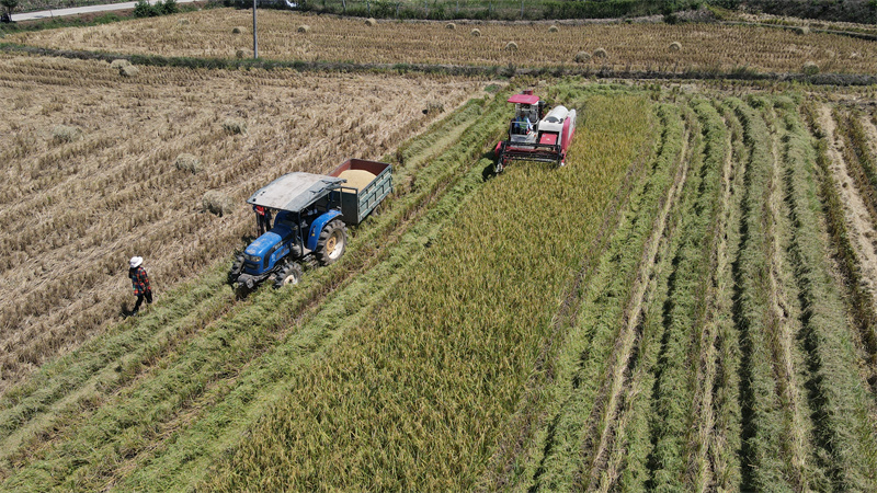 9ÔÂ4ÈÕ£¬¼ÇÕßÔÚÒ˳ÇÊÐÁõºïÕòÑîÀЈ›µÈ´åÊÕ¸îÏÖ³¡¿´µ½£¬Á¬Æ¬µÄµ¾ÌïÏñ½ð»ÆÉ«µÄµØÌº£¬³ÁµéµéµÄµ¾ËëѹÍäÁ˵¾¸Ñ£¬Ëæ×Å΢·çÒ¡Ò·¡£Ë®µ¾ÁªºÏÊÕ¸î»úÔÚµ¾ÌïÀïÀ´»Ø´©Ë󣬰éËæ×Å»úÆ÷µÄºäÃùÉù£¬²ã²ãµ¾Ëë±»¾íÈë»úеÖУ¬Ò»Á£Á£µ¾¹È±»ÊÕÈë"ÄÒ"ÖС£¿´×ÅÒ»Á¾Á¾ÂúÔØµ¾Á£µÄÅ©Ó󵣬´åÃñµÄÁ³ÉÏÑóÒç×Å·áÊÕµÄϲÔá£