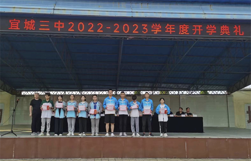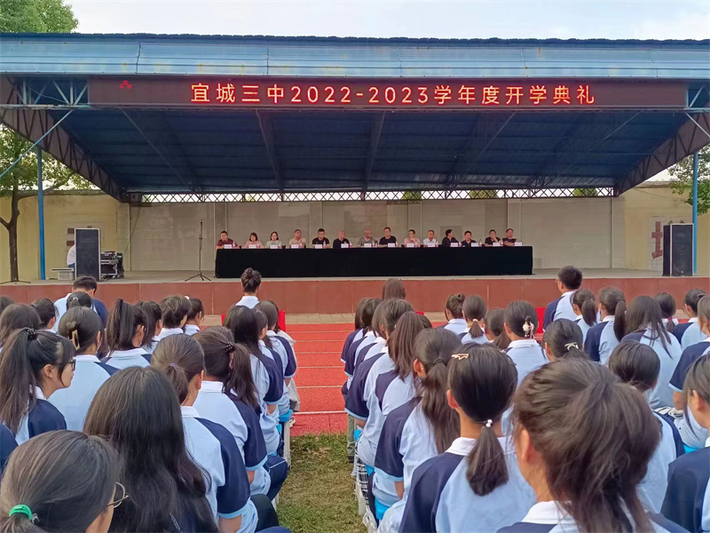 本网讯通讯员张大德报道:9月7日,宜城三中举行2022年秋季开学典礼,全体师生面对新机遇,迎接新挑战,开启新征程,以蓬勃向上的姿态共创文明城,喜迎二十大。