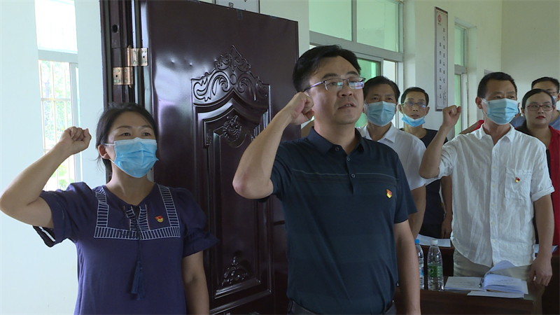 "我志愿加入中国共产党,拥护党的纲领,遵守党的章程,履行党员义务,执行党的决定……",全体党员面对党旗,庄严宣誓,表达了自己对党的忠诚信仰和随时准备为党和人民牺牲一切,永不叛党的坚定决心。
