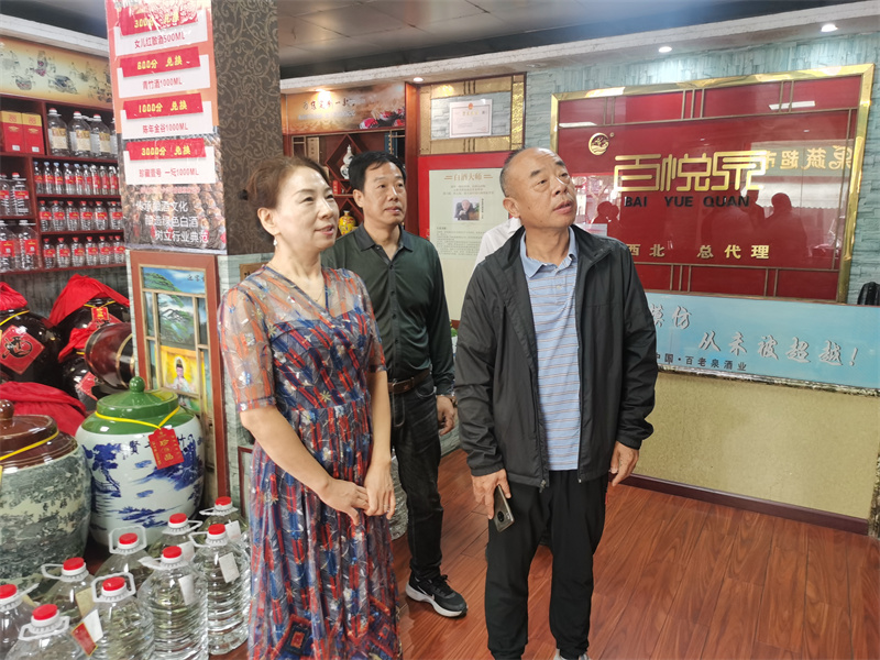 王民一行先后深入到不同的销售网点进行现场查看,听取经销商和消费者的意见和建议。王民表示,品酒师只有多跟消费者面对面交流,在口感、风格、市场上加大调研力度,才能在坚守传统的同时积极创新。王民希望"百悦泉"经销商要注重品牌宣传,增强消费者的感情粘性,希望通过销售平台,宣传白酒文化、工艺、流程,着力打造让群众满意的放心酒。