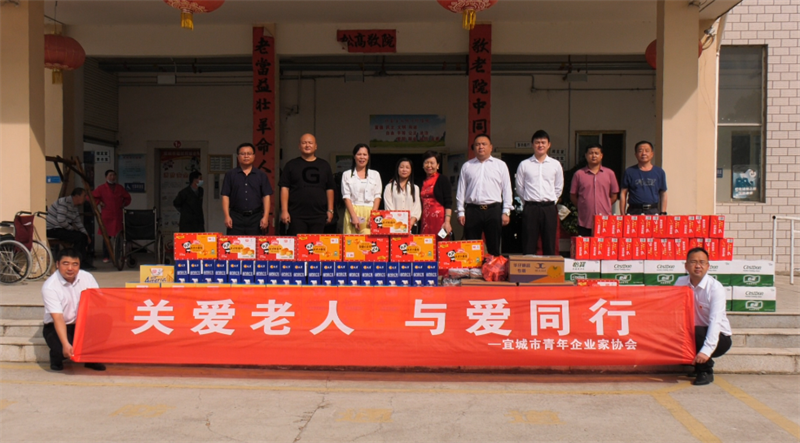 本网讯通讯员丁小辉 记者张尚东报道:9月30日,宜城市工商联携手青年企业家到福星苑养老服务中心,开展以"关爱老人,与爱同行"为主题的爱老敬老活动,为老人们送去慰问物资,让老人们感受到来自社会各界的关怀。