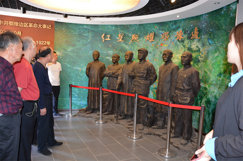 大家集中学习了《中国共产党章程》、《中国共产党纪律处分条例》、习近平总书记在省部级主要领导干部专题研讨班上的重要讲话精神、王蒙徽在省委常委会(扩大)会议暨市州党委书记座谈会上的讲话精神等系列讲话精神后,到鄂豫边区革命纪念馆开展党史学习教育。