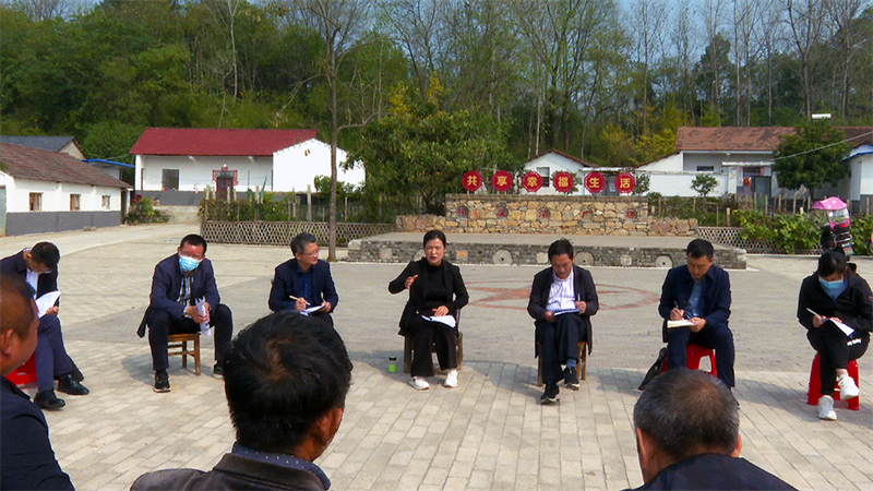 在刘猴镇胡坪村二组,肖平与镇村干部、村民围坐一圈,和他们面对面交流,了解诉求,听取他们对"共同缔造"工作的意见和建议,现场研究解决方案。
