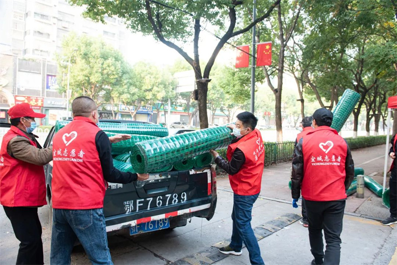 市纪委常委、监委委员齐永华带头下沉紫阳观社区,协同社区党员志愿者为发展小区搭建800多米长的围挡,为居民搭建了一道绿色的“安全屏障”,确保小区居民在疫情期间的安全健康。