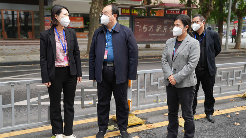 本网讯记者邬玲玲 李明磊报道:11月3日下午,宜城市委书记武义泉,市委副书记、市长肖平深入疫情防控重点部位,看望慰问奋战在抗疫一线的干部职工、医务人员、社区工作者、执勤民警和志愿者,检查督导疫情防控工作。武义泉对大家的辛勤工作表示感谢,勉励大家继续保持斗志,力争早日打赢疫情防控歼灭战。市领导朱晓林、蒙瑾参加检查。