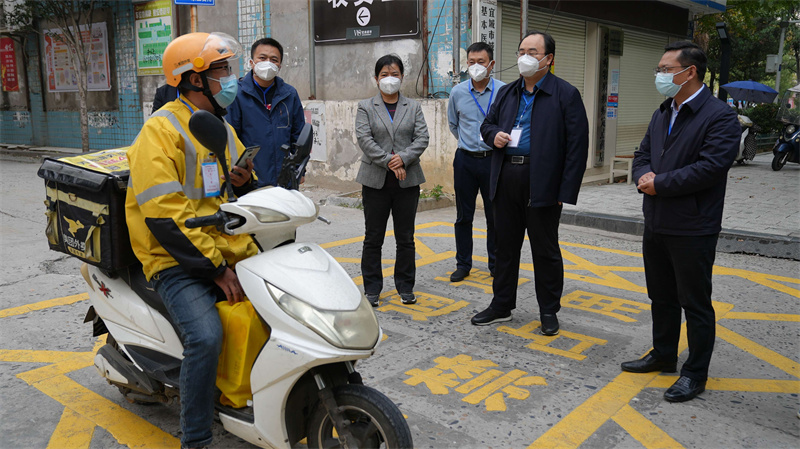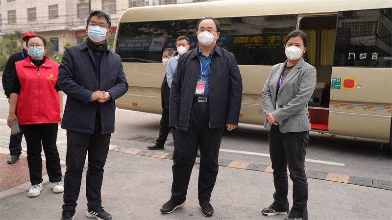 在原畜牧局小区、锦苑小区,武义泉一行实地查看询问了防疫人员配备、核酸检测、应急处置、后勤保障、工作生活等情况。他强调,要从严从紧、落实落细小区和社会面各项管控措施,科学、认真研判转运人员,同时要防止次生事故、次生伤害发生;要做好重点人群和居家隔离居民生活物资保障等关怀服务,及时受理、处置、反馈群众保供诉求,切实保障群众生活所需,真正把工作做到群众心坎上。