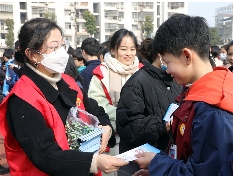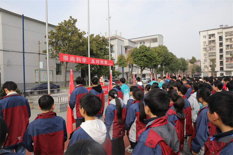 本网讯记者李勤 周波报道:3月3日,宜城市委政法委走进汉江中学,开展“崇尚科学 反对邪教”宣传教育活动,进一步提升青少年识别邪教、抵制邪教、防范邪教、拒绝邪教的能力和意识,切实守护校园净土。