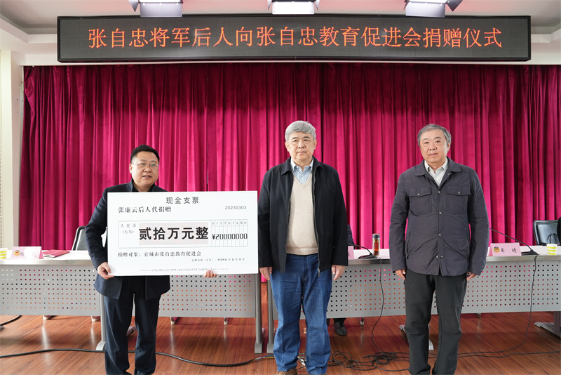 本网讯记者向杰廷 邬玲玲通讯员蔡芳报道:3月3日,宜城市政协举行张自忠将军后人向张自忠教育促进会捐赠仪式 ,张自忠将军的外孙车晴、车临遵从母亲张廉云女士的遗愿 ,向张自忠教育促进会捐赠人民币20万元,作为宜城教育事业的奖励费用。市政协主席李源、副主席杨健健参加活动。