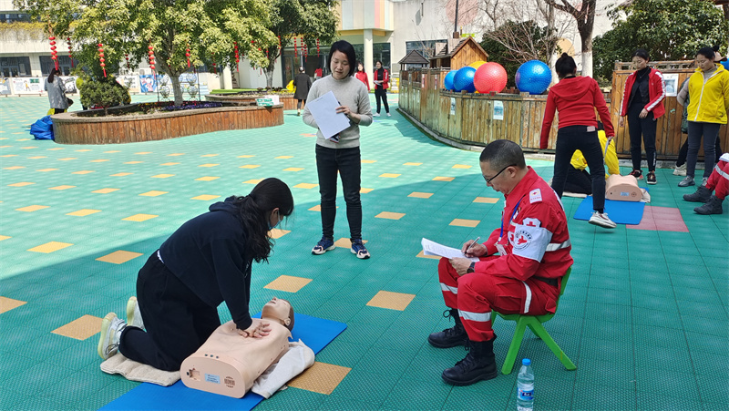随后,宜城市实验幼儿园邀请襄阳市红十字会讲授急救知识和技能。培训中,讲师们就红十字会起源、心肺复苏术、创伤救护等应急救护知识技能进行系统讲解和实操教学。教职工学会了基本的急救理论知识和实践操作,顺利通过了考核,获得《红十字救护员证》。