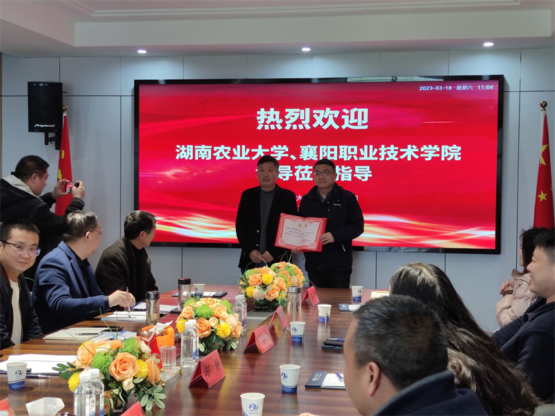 会上,楚大鸭业与湖南农大、襄阳职业技术学院达成企校合作意向,并聘请邬静教授为特聘专家。