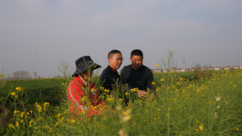 4月1日,在龙头街道铁湖村,市农业专家深入田间地头指导农户开展小麦、油菜田间管理, 有效应对强降雨带来的不利影响。