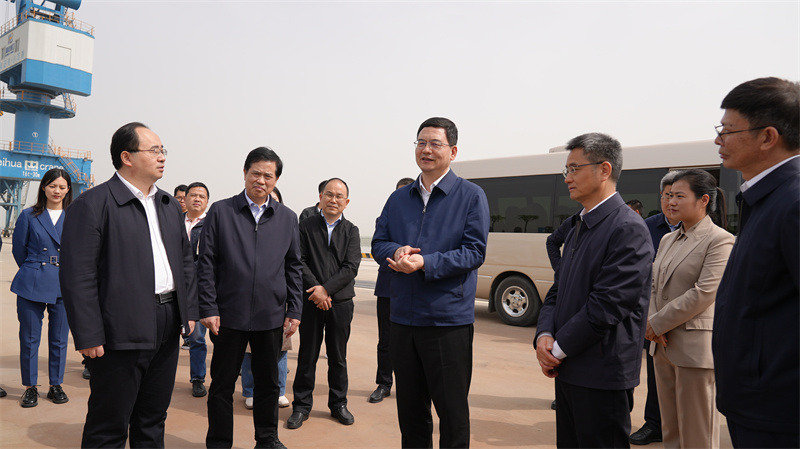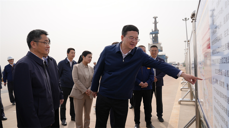 在小河港区综合码头,盛阅春详细了解了汉江航道、襄阳港规划布局、小河港区规划建设、港产城融合发展等情况。