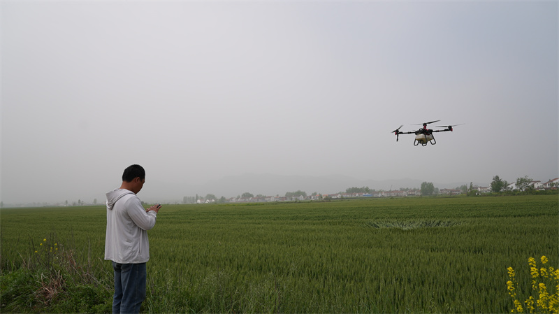 4ÔÂ13ÈÕ£¬ÔÚÀ׺ÓÕò¹ÙÑߴ壬һ̨ÎÞÈËÖ²±£»úÕýÔÚСÂóÌïÀ↑չ·É·À×÷Òµ¡£