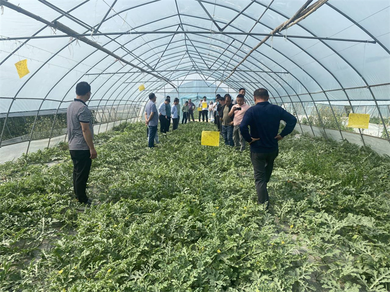 别之龙教授和宜城市农业技术推广中心相关负责人一起,到位于流水镇的京瑞通达公司西瓜基地、莺河村的湖北佳禾农业发展有限公司的大棚西瓜基地,实地查看大棚西瓜长势,通过现场查看和座谈方式,向种植户传授大棚西瓜近期管理要点,回答农户在生产中遇到的问题。通过现场巡回指导,纠正了种植户在生产管理中的错误操作,受到了经营主体和种植户的普遍欢迎。