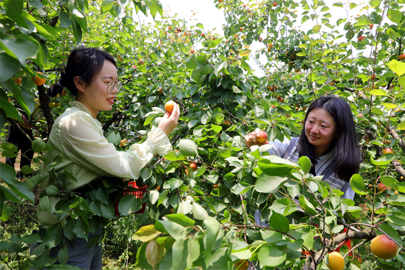 加上后期梨子采摘,范家娥家仅果树一项,每年就能挣10多万元。尝到特色种植甜头的她,致富不忘乡邻,还带动当地村民一起种植林果,发展"采摘经济",开启"杏"福新生活。
