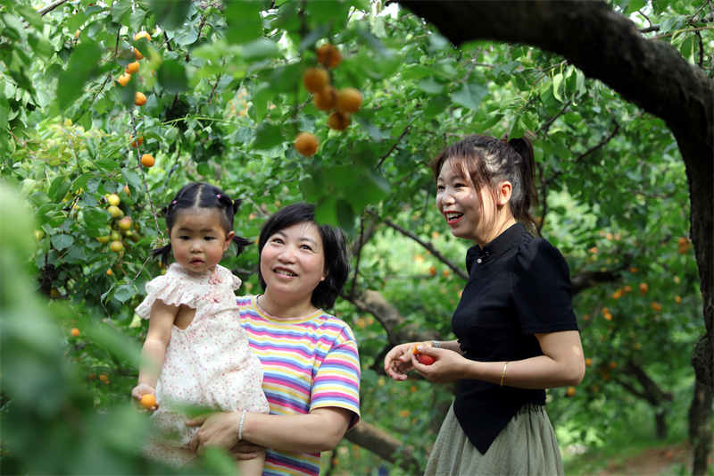 谈起今年效益,范家娥脸上笑开了花:"5月7号开园,现在每天有100多人来摘杏子,截至目前,已经卖了3万多元了,后期还有晚熟的品种,早熟加晚熟五亩杏子纯收入预计能达五六万元。"