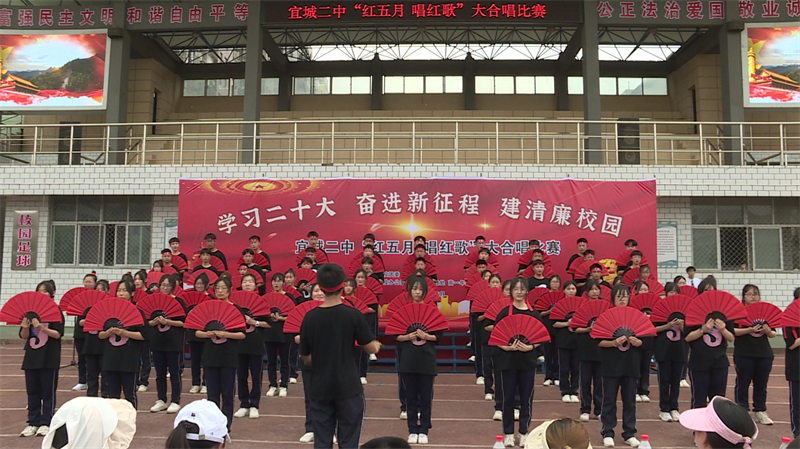 本网讯记者李明磊 通讯员周正华报道:5月19日,宜城二中举行"红五月 唱红歌"大合唱比赛。
