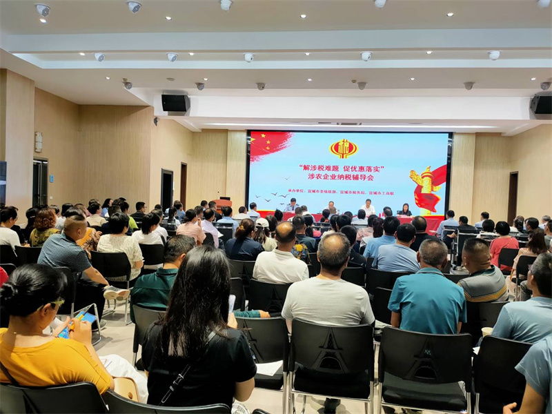本网讯通讯员熊家辉 李燕报道:5月19日,宜城市委统战部、市税务局、市工商联联合举办“税收优惠促发展 惠企利民向未来”涉农企业纳税辅导会,对120多家农产品加工企业法人、财务负责人讲授纳税知识,并面对面解答涉税问题。