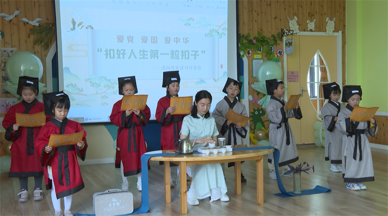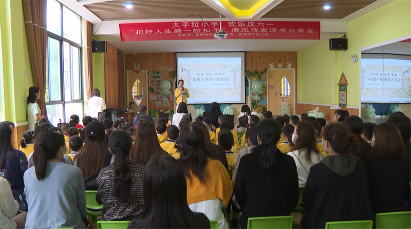 本网讯记者谢子恒 通讯员王燕报道:5月29日,宜城市妇联在伟才幼儿园开展“大手拉小手 欢乐庆六一”“扣好人生第一粒扣子”清风传家读书分享会。