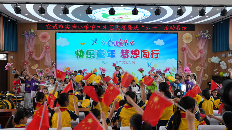 本网讯记者邬玲玲 实习记者蔡小莉 通讯员李凤英报道:动感的架子鼓、优美的拉丁舞、悦耳的古筝……6月1日上午,宜城市实验小学举办“快乐童年 梦想向前”庆“六一”学生才艺汇演。通过形式多样、丰富精彩的节目营造快乐的节日氛围,同时充分展现学校素质教育的丰硕成果。