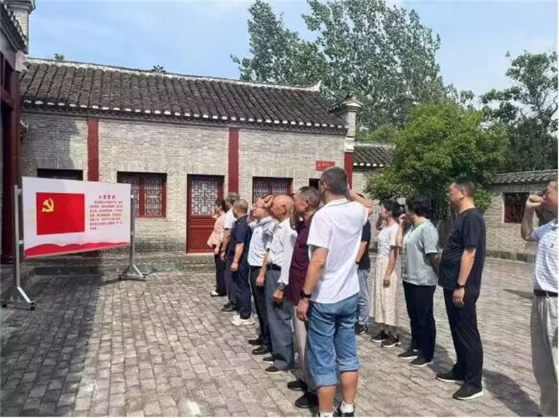 大家先后参观了位于板桥店镇新街村鄂豫边区革命纪念馆和王集镇的王全国纪念馆。在革命纪念馆里,大家在一幅幅图片前驻足观看,仔细阅读着文字,接受党性教育和精神洗礼。参观完毕后,全体党员在党旗前一起高举右手,重温入党誓词。