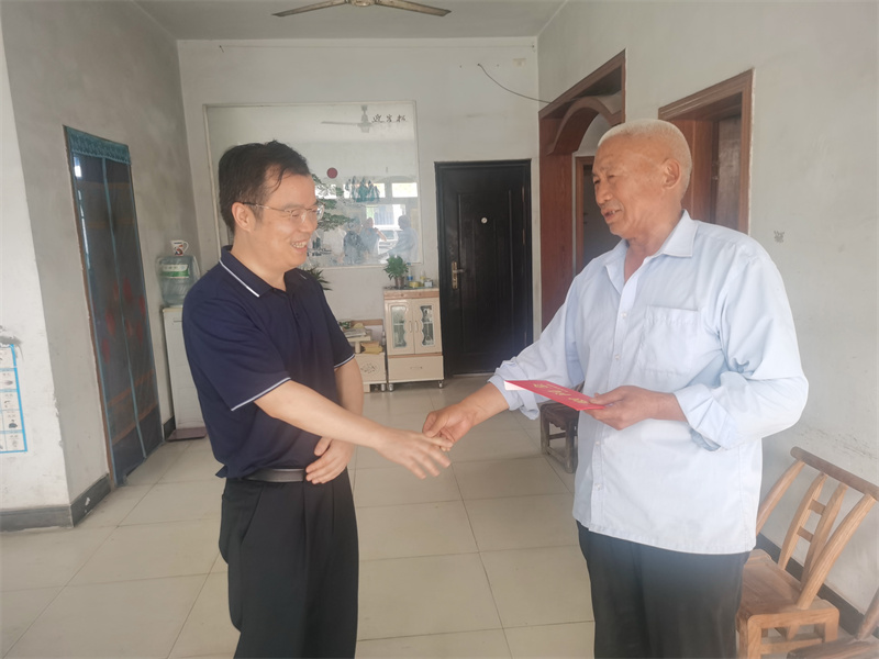 蔡正方一行先后来到新华村张广生和荣河村李付才、张大荣等老党员和困难党员家中,亲切询问他们的生活经济、身体健康状况,将慰问金送到他们手中。