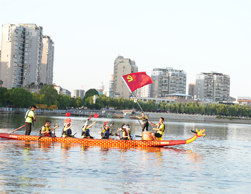 “我们宋玉龙舟队队员三分之一都是党员,今天我们用这种独特的方式,歌颂我们伟大的中国共产党!”宋玉龙舟队队长马文明激动地说,“希望我们宋玉龙舟队越来越强,希望我们的生活越来越富足,祝福我们的祖国更加繁荣富强!”
