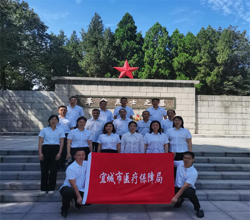 活动中,宜城医保局党员干部还来到襄阳市烈士陵园,在革命英雄纪念碑前重温入党誓词,拜谒革命先烈,向革命先烈敬献鲜花。