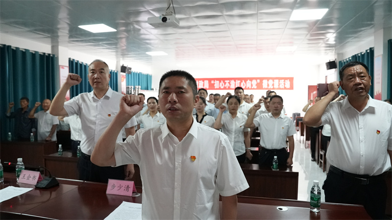 与会党员庄严宣誓,重温入党誓词。市财政局主要负责人以《“财政力量”支持乡村振兴 打造和美乡村“龙潭样板”》为题,为大家上了一堂生动的党课。