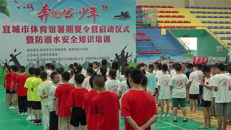 本网讯实习记者蔡小莉报道:7月5日,宜城市体育馆暑期夏令营启动仪式暨防溺水安全知识培训举行,市文旅局、市红十字会、市体育馆相关负责人,暑期夏令营全体学员及家长代表参加了启动仪式。