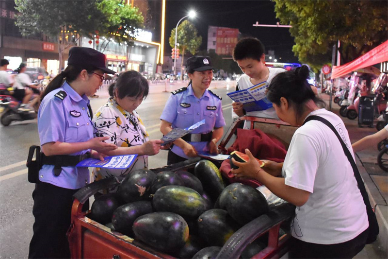 本网讯记者张尚东 通讯员杜心怡报道:7月7日晚,宜城警方开展首次夏夜治安巡查宣防集中统一行动,强化社会面管控,震慑违法犯罪。