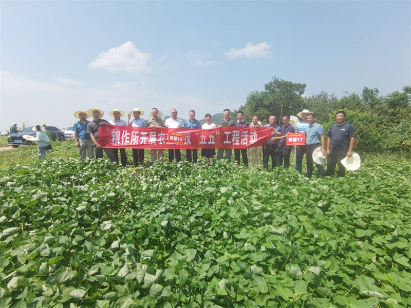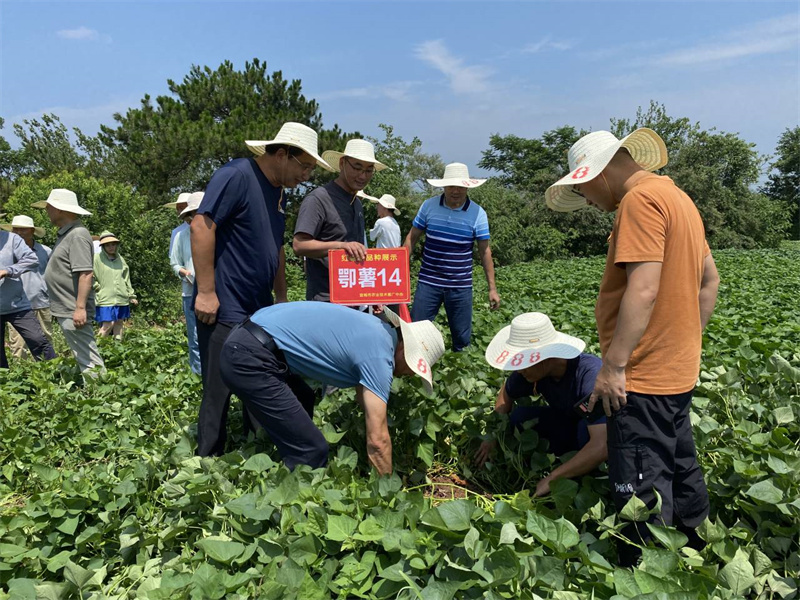 调研组深入板桥店镇王台村,调研甘薯产业技术体系产业,在罗屋村,观摩了鄂薯新品种试验,并进行了技术交流。