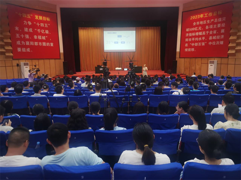 本网讯记者向杰廷 通讯员曹新月报道:7月14日下午,宜城2023年第五期青年干部大讲堂(云讲堂)在市人民会堂开讲。各地各单位分别设置了分会场,市融媒体中心进行了网络直播,2万多干部群众和网民观看了大讲堂直播。