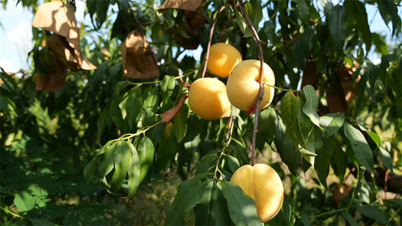 宜城市农业农村部门也送来了最新的种植技术,指导果农采用原生态种植、精细化管理、农家肥养护等一系列种植模式,有效提升了黄桃的品质和产量,结出的果实甜度达到14,深受客商欢迎。