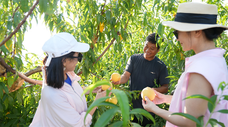 "桃产业"结出"致富果",这只是该村特色产业的一个缩影。近年来,王台村依托乡村自然资源及民族特色,发展以农业产业为主、牛羊养殖和瓜果特色产业为辅的优势产业。通过农旅融合,吸引了众多的游客前来游玩采摘,实现了产业振兴,农民增收。