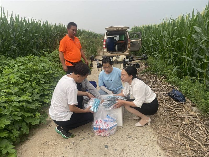 Ò˳ÇÊÐÅ©¼¼ÍƹãÖÐÐļ¼ÊõÈËÔ±ÔÚÌï¼ä·ÅÖóàÑÛ·äɱ³æ¿¨£¬È»ºó×éÖ¯ÎÞÈË»ú×÷Òµ£¬¿ªÕ¹ÉúÎïÒ©¼Á·ÀÖΡ£