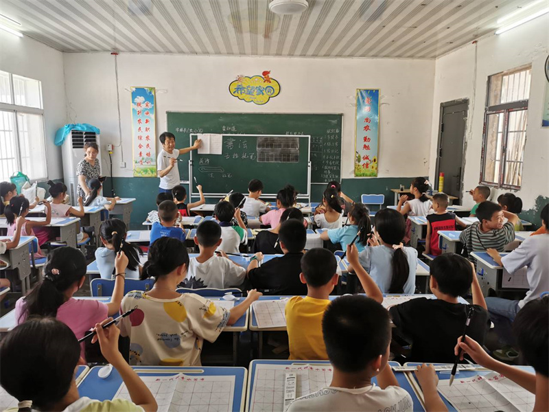 本网讯记者邬玲玲报道:“孩子们,书法有5种字体,分别是楷书、行书、草书、隶书、篆书……”7月28日,宜城文联组织书画文艺志愿者走进王集镇千柏村,为这里的爱心托管班孩子们赠送了50套笔墨纸张,并讲授了精彩的书画启蒙教育课。