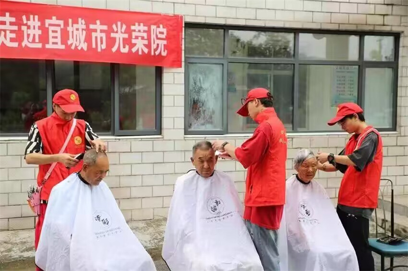 本网讯记者李明磊通讯员常敏报道:7月31日,在中国人民解放军第96个建军节即将到来之际,宜城市关工委、市委老干部局、市慈善总会、余彬医院、诗彩·名师芭莎理发店等志愿服务队走进宜城市光荣院,开展"情系老兵义诊义剪"志愿服务活动,为光荣院老人送上真挚的慰问和节日的祝福。