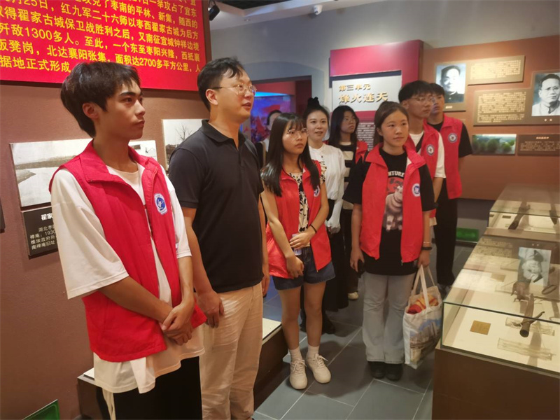 暑期社会实践活动在红色学习教育中拉开序幕。大家先后来到鄂豫边革命纪念馆、红军第九军第二十六师临时指挥部舒家洞接受革命传统教育,缅怀革命先烈,进一步增强师生的理想信念,强化宗旨教育。