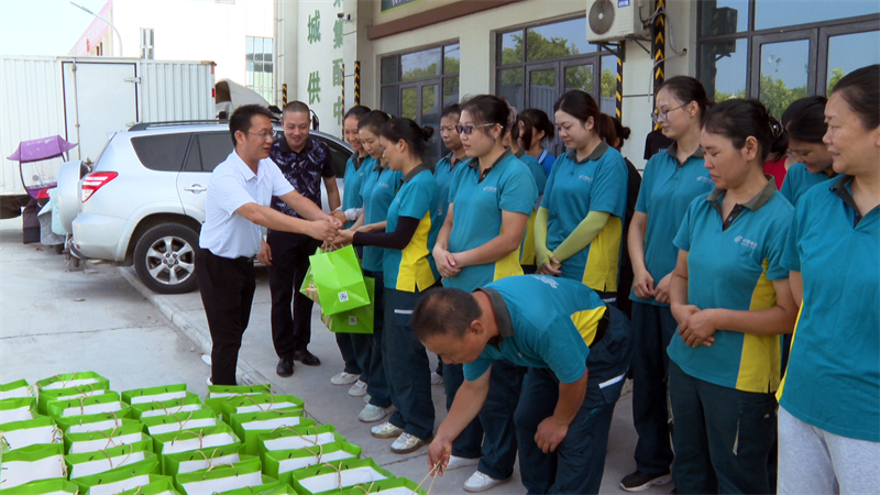 当天上午,慰问人员先后到中国邮政宜城市分公司、宜城美团外卖公司等地,看望慰问高温下的一线劳动者,为他们送去150份"清凉爱心包",对他们高温下的辛勤付出表示感谢,同时提醒他们一定要做好防暑降温工作,注意出行安全和劳逸结合。