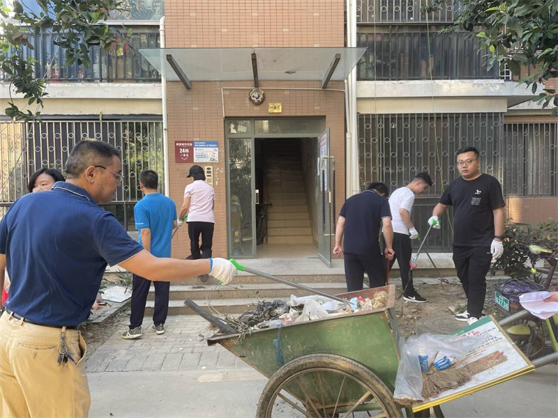 早上7点30分,魏迎庆一行来到嘉豪城市花园小区,手拿铁夹、扫把、铁锹等清扫工具,沿着小区道路,认真细致地清扫垃圾、清理废弃物等。参与劳动的党员干部、社区工作者、物业人员等有序分组分工,很快将小区打扫一新。