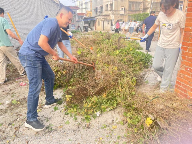 市委办(政研室)干部手拿铁锹、扫把、镰刀等工具,化身“清洁卫士”熟练地挥刀舞锹,将院落墙角藤蔓杂草一一清除;随处可见的白色垃圾也被收集打包装车带走。